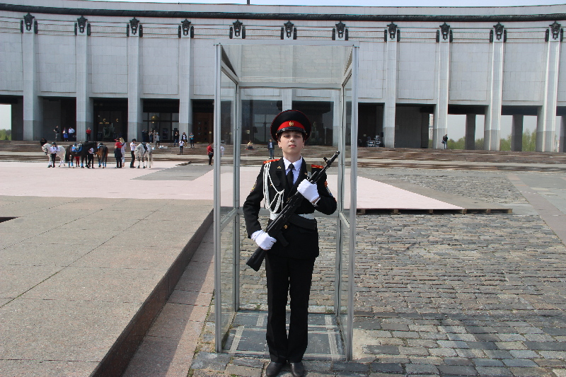 В ходе мероприятия с ребятами была проведена интересная, познавательная экскурсия по музею Победы. Каждые 20 минут разводящие сменяли караул. Сложность заключалась в том, что заступать нужно было на пост церемониальным шагом 80-90 шагов в минуту и высотой подъёма ноги 30-40 см. Ребята достойно справились с несением караульной службы.