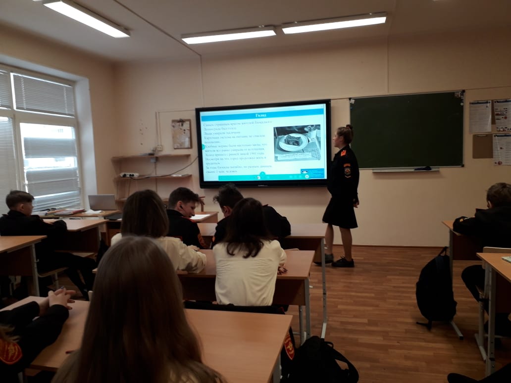 Северная столица в годы войны стала примером мужества для всех. Кадеты вспомнили события этих страшных лет, «Дорогу жизни» через Ладогу, героев города-солдата, города-труженика, которые выполняли свой долг до конца. Будущие защитники Родины посмотрели фильм «Урок мужества. Подвиг блокадного Ленинграда», в котором очевидцы поделились с подрастающим поколением своими воспоминаниями пережитых лет.