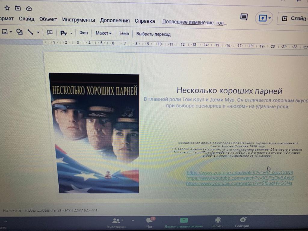 Встречу проводила Московская финансово-юридическая академия и поэтому, в первую очередь, речь шла о востребованных и перспективных профессиях в области права и юриспруденции. Кадеты обсудили фильмы «Закон и порядок», «Несколько хороших парней», в которых главные герои адвокат, судья.