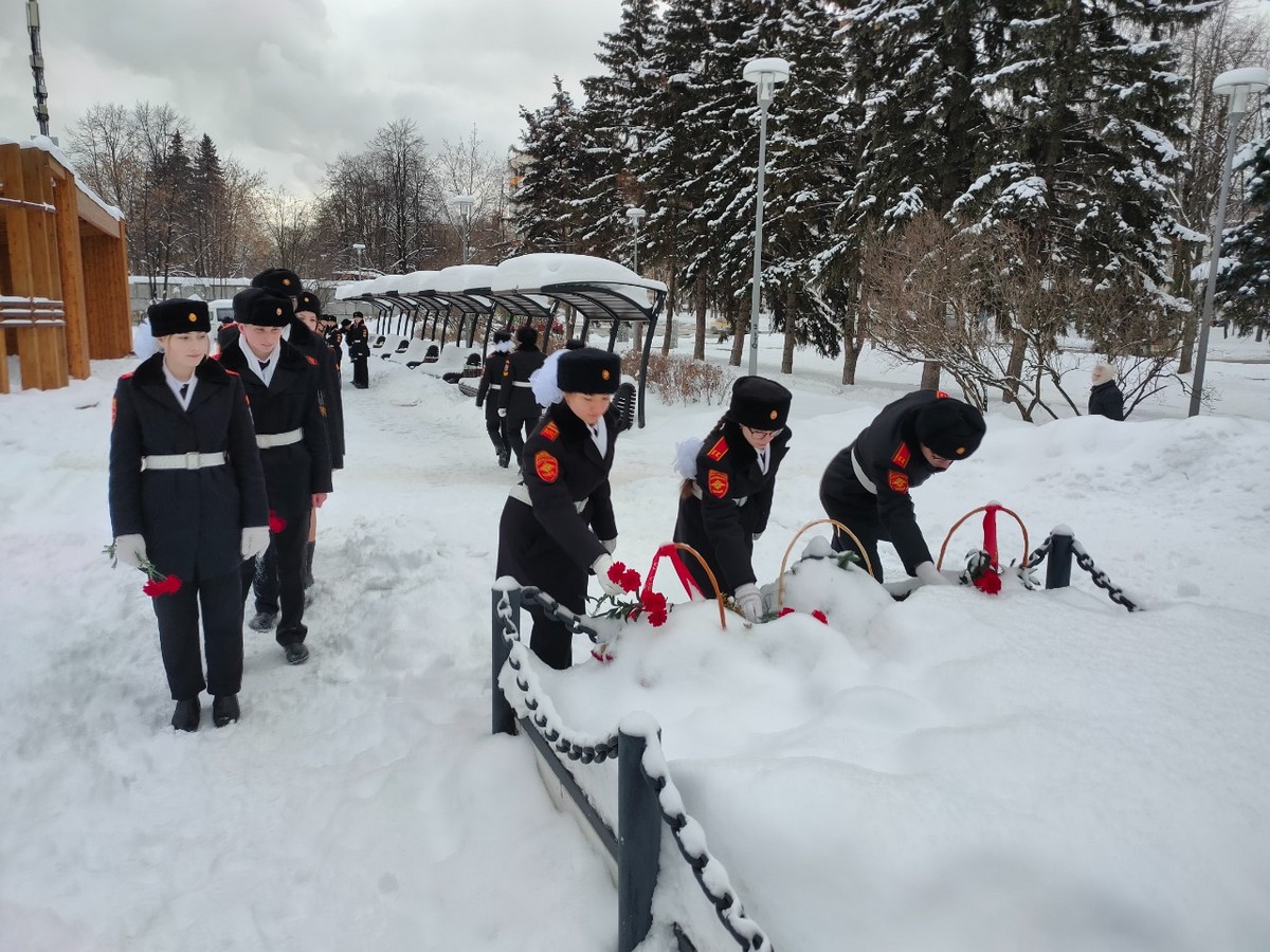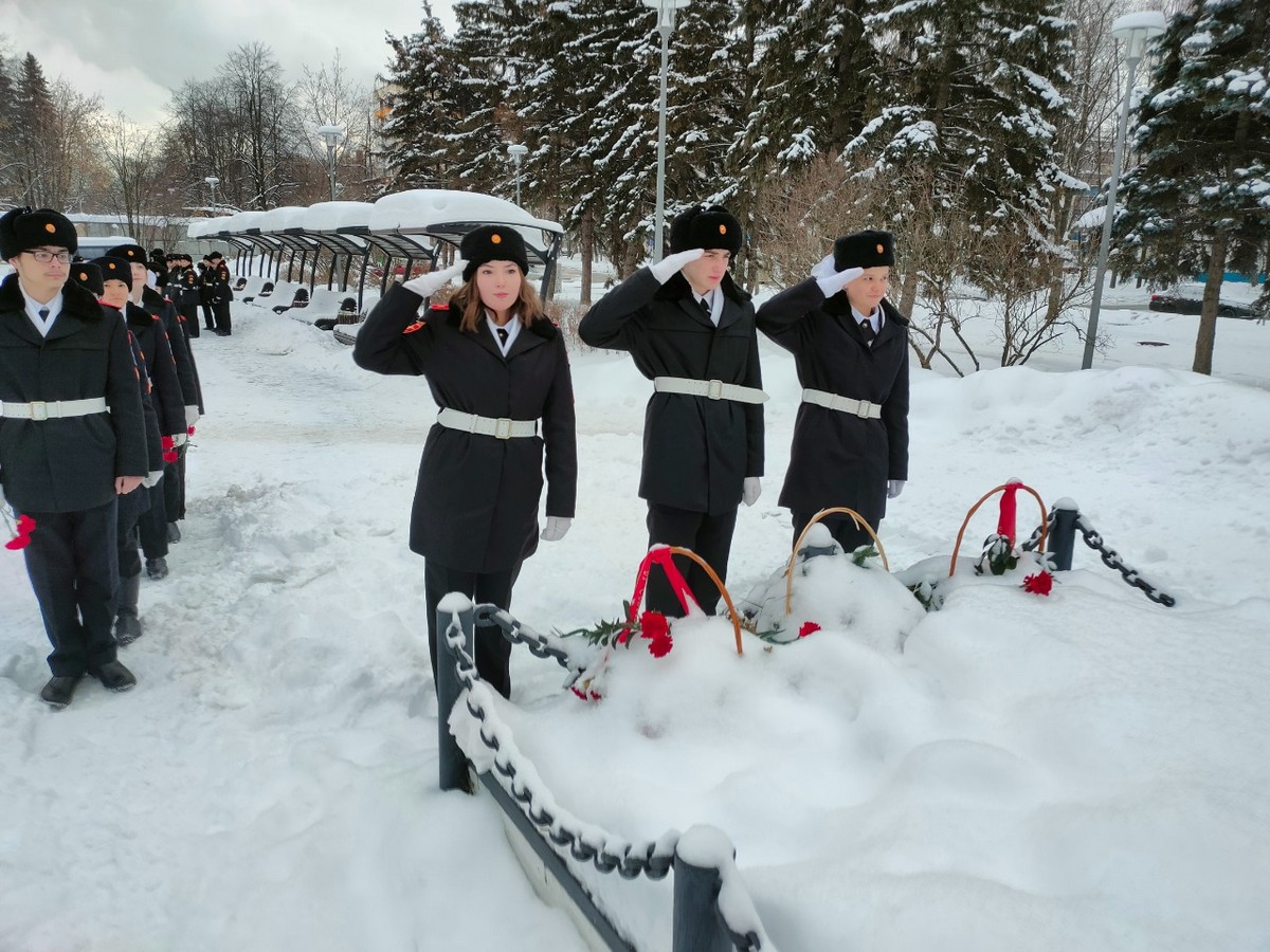 Возле памятника воинам-нефтяникам, погибшим в годы Великой Отечественной войны, был проведен митинг, посвященный событиям блокады. Кадеты возложили цветы к подножию памятника и прошли торжественным маршем. У Памятника во время мероприятия был выставлен пост часовых из состава 92-го взвода.