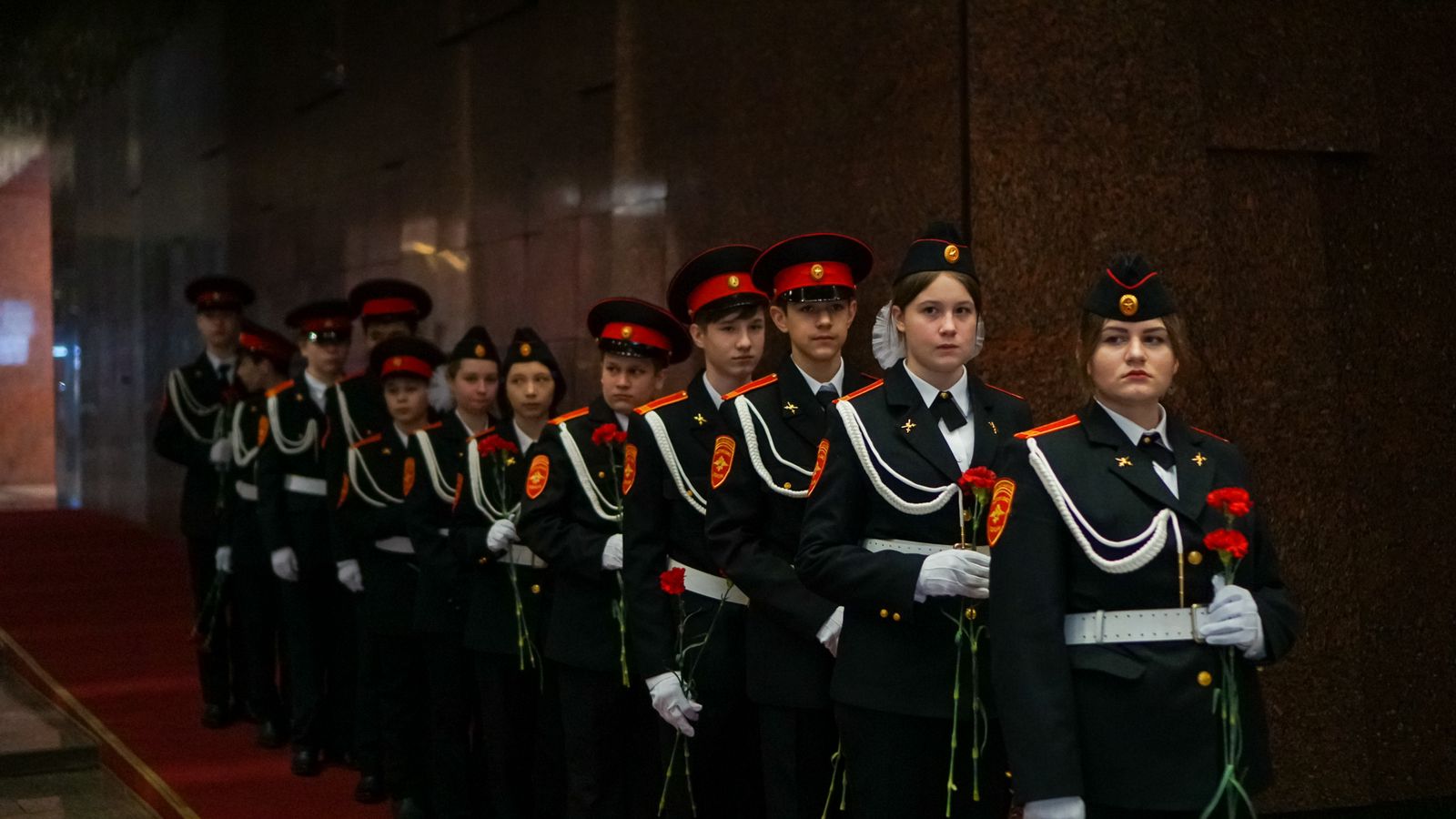 На торжественной церемонии присутствовали директор Школы в Капотне Ульянова Ирина Сергеевна, заместитель директора Каманина Светлана Владимировна, педагоги, знаменная группа 92-го взвода и родители учеников кадетского класса.