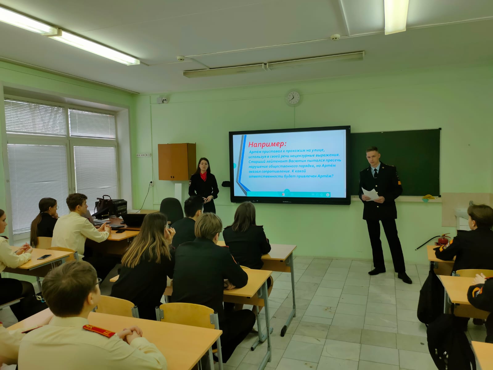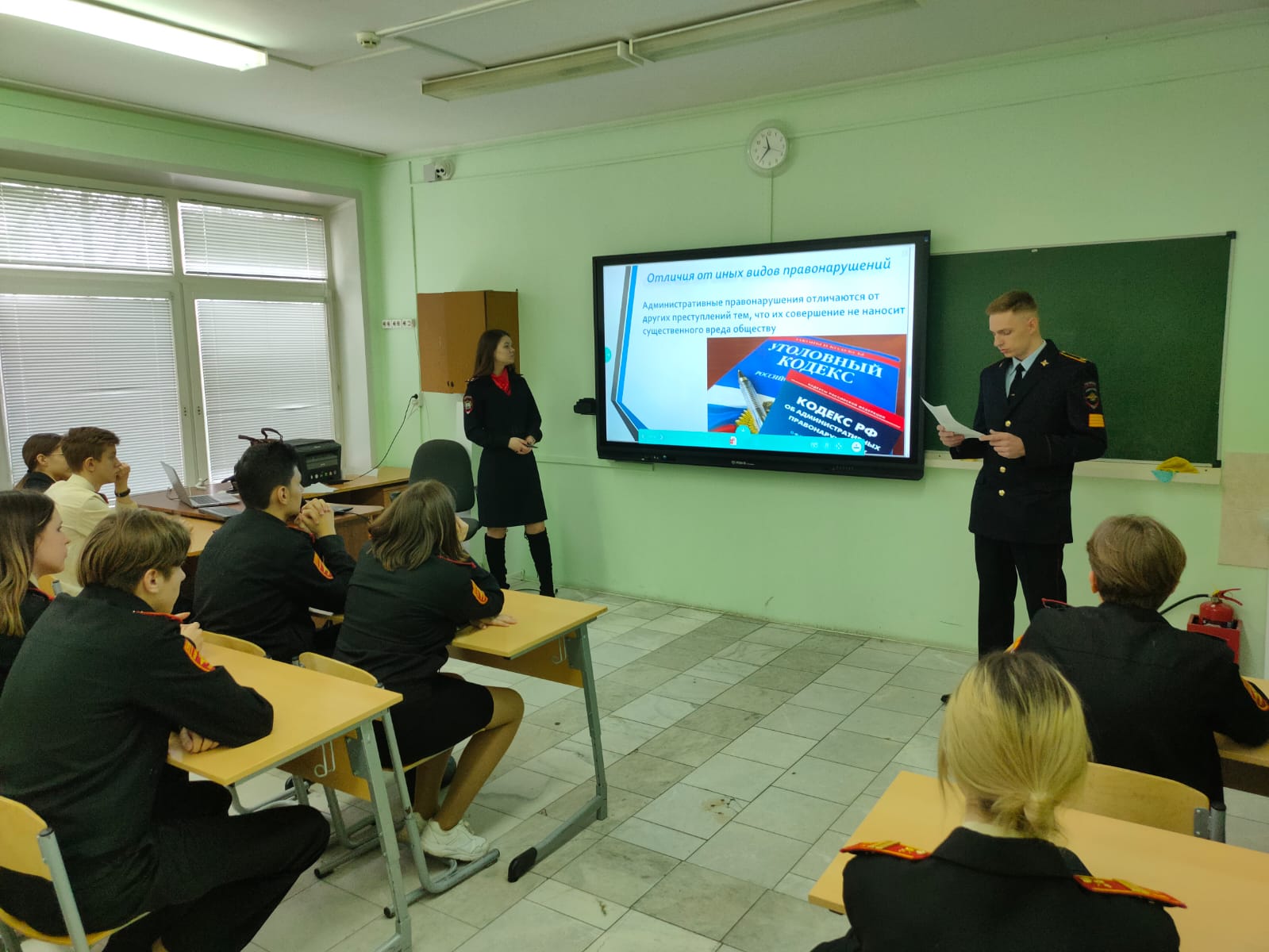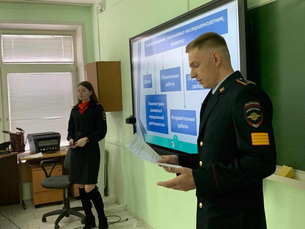 Гости рассказали кадетам об административных правонарушениях, кого могут привлечь к данного вида правонарушениям и какова ответственность, об особенностях уголовной ответственности и наказания несовершеннолетних.