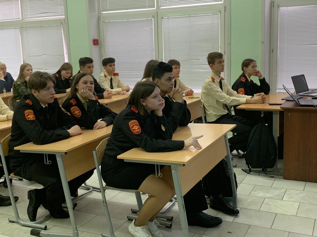 21 апреля в 9В кадетском классе корпуса Камергерский в рамках профилактического мероприятия «Твой выбор» прошла встреча кадет с сотрудником Московского университета МВД РФ им. В. Я. Кикотя старшим лейтенантом полиции Хиневич Ксенией Игоревной и курсантом 4 курса Смысловым Владиславом.