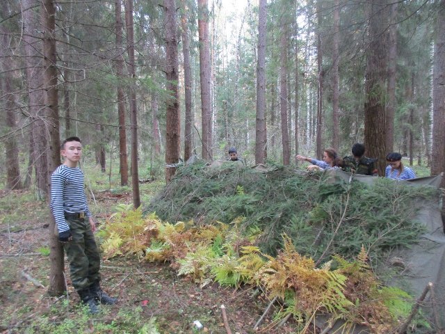 Выбрав место, выставили караул и начали обустройство лагеря: строили односкатные полевые укрытия, занимались заготовкой дров на ночь, разжигали костёр. Ещё до наступления темноты укрытия были построены, дрова заготовлены и можно было приступать к ужину. На ужин у каждого кадета была тушёнка, каша с мясом и сгущённое молоко, ну и, естественно, сухари. Многие кадеты впервые пробовали походное питание.