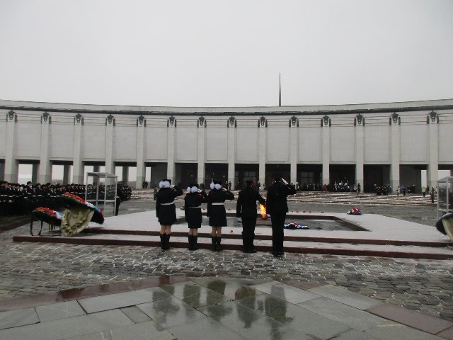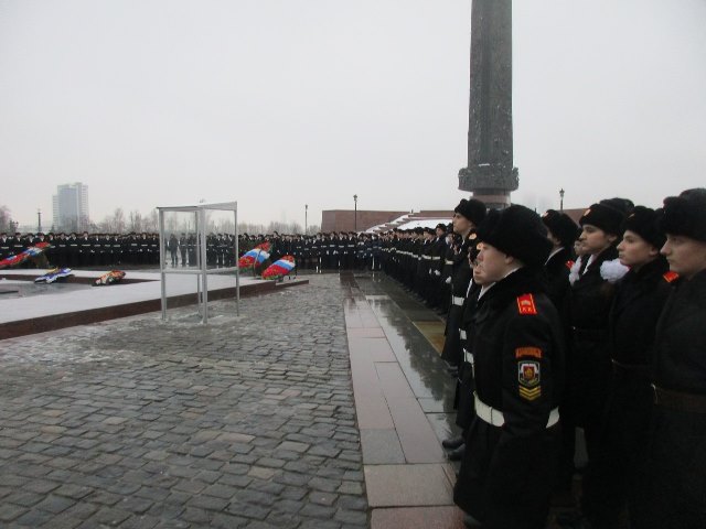 Тысяча кадет и около сотни офицеров были построены в каре на площади перед вечным огнём. Перед строем выступали военноначальники и герои России. Было торжественное возложение венков к вечному огню, после чего на пост заступил караул из числа кадет. Кадеты прошли торжественным маршем мимо вечного огня, отдавая дань уважения своим героическим предкам.