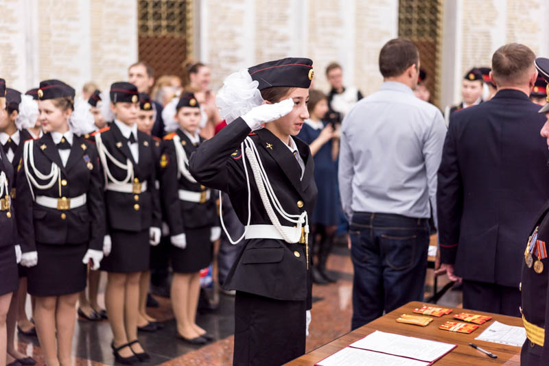 В строю нашего 71-го взвода стоят кадеты – представители офицерских династий: Ромашёв Андрей, Лиза Новак, Ольга Ломовцева, Даниил Верёвкин, Никита Глебов, Шестак Андрей. По окончании присяги будущих офицеров напутствовали три генерала. Общее традиционное напутствие уже для кадет сделали генерал-лейтенант Виктор Иванович Вытулев и генерал-майор Владимир Иванович Тарасов. По окончании церемонии принятия присяги был вынос знамени и все 7 взводов прошли торжественным маршем в зале Воинской славы!