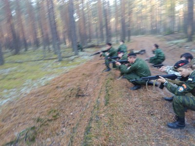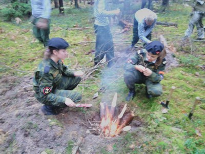 С 6 на 7 октября кадеты нашей школы совершили военно-полевой выход в леса Шатуры. В походе был марш по лесным тропам, обустройство лагеря, разведение костра в сыром лесу, приготовление пищи на костре, испытания на смелость в темном лесу, ночное дежурство у костра, утренняя зарядка, отработка тактических приемов при столкновении с противником.