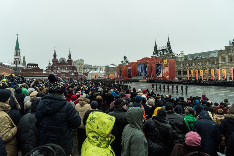 Торжественный марш, посвященный 75-й годовщине военного парада 1941 года, начался на заснеженной Красной площади в понедельник.